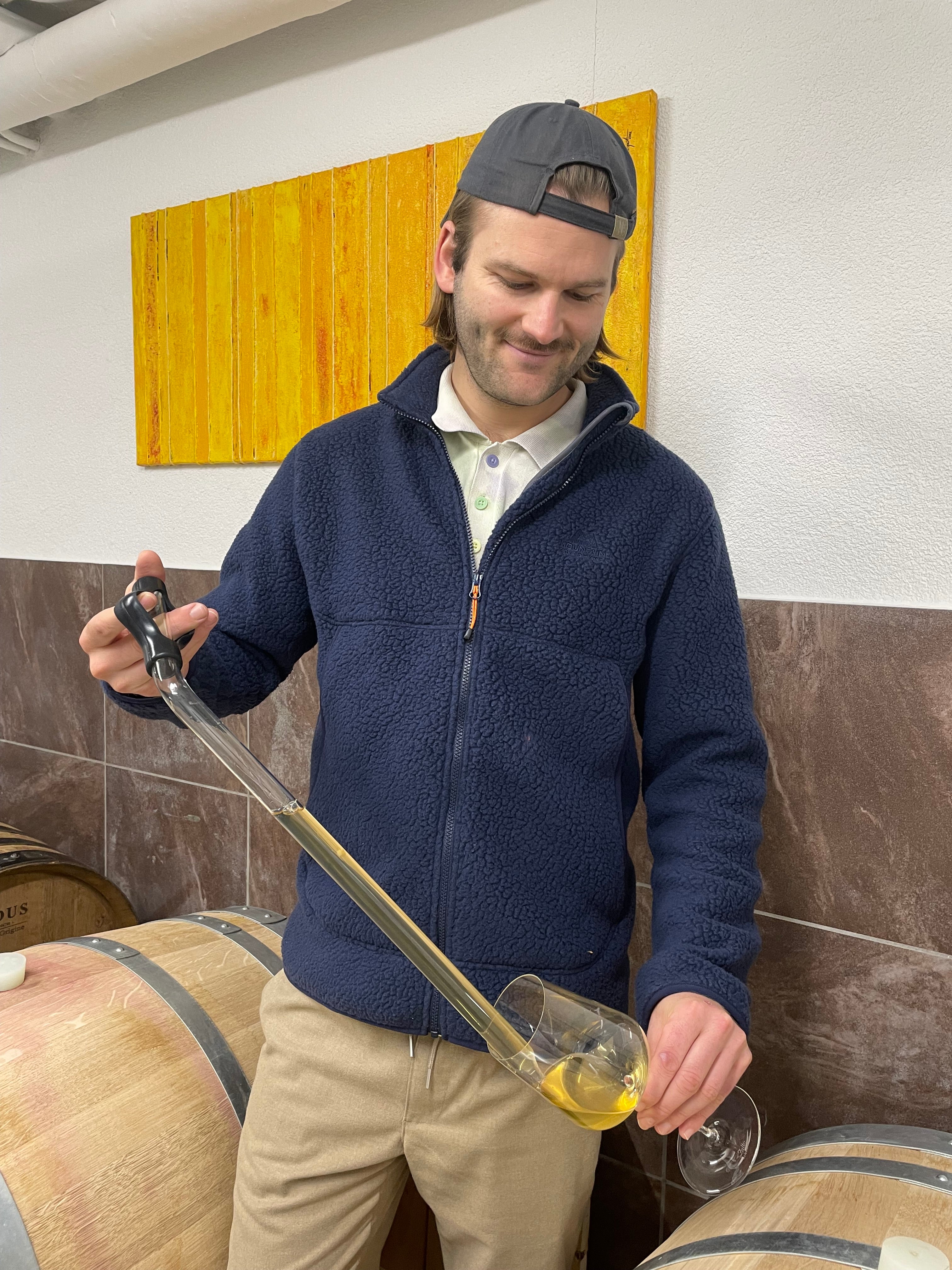 Für die Vergärung und den Ausbau verwende ich hochwertige Barriques aus französischer Eiche. Dies macht den Wein vielschichtig und verleiht ihm einen langen Abgang.